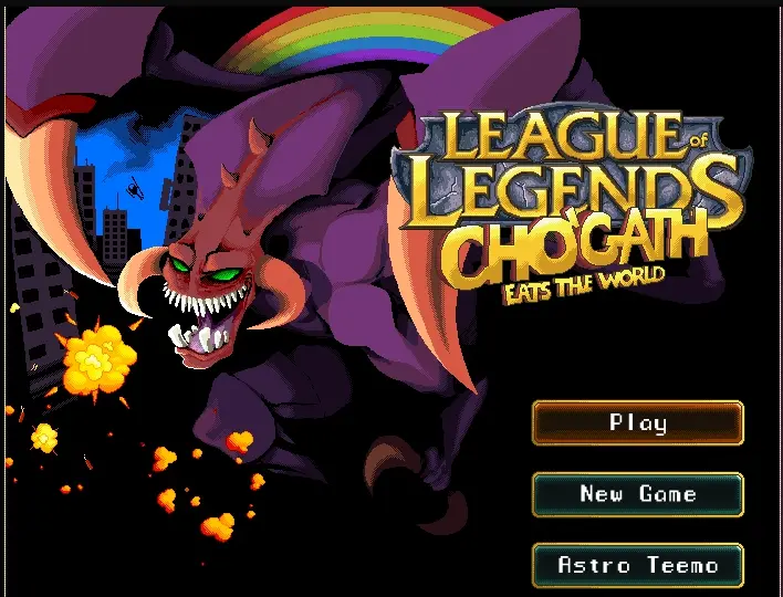 - Cho’Gath Eats the World (CHEW) — a Flash arcade game where players controlled Cho’Gath climbing skyscrapers, smashing buildings, and eating enemy champions. It felt like an old-school Rampage clone, but with League flavor [source].