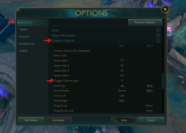 The camera in League can be either locked to your champion or freely movable. Being able to unlock the camera is one key advantage in managing potential threats during the ever changing flow of a match. Here's how to toggle it: